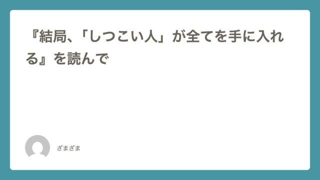 『結局、「しつこい人」が全てを手に入れる』を読んで