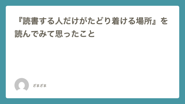 『読書する人だけがたどり着ける場所』を読んでみて思ったこと