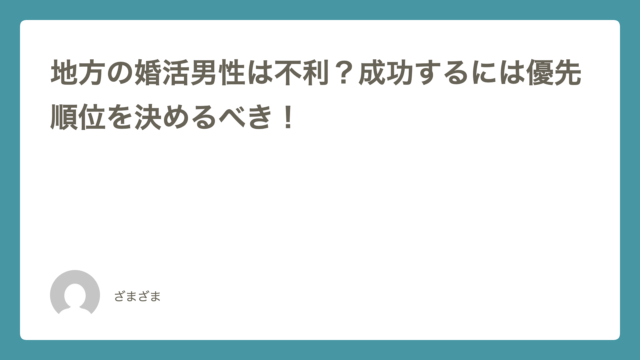 地方の婚活男性は不利?成功するには優先順位を決めるべき!
