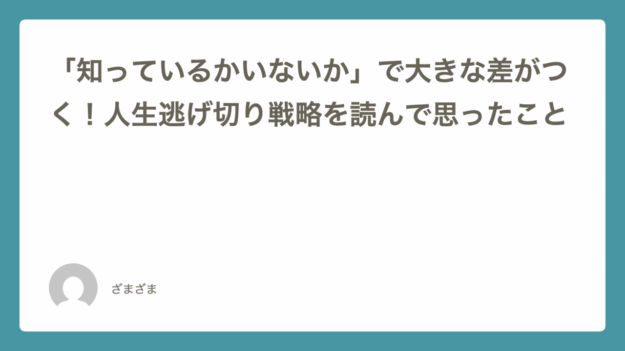 「知っているかいないか」で大きな差がつく!人生逃げ切り戦略を読んで思ったこと