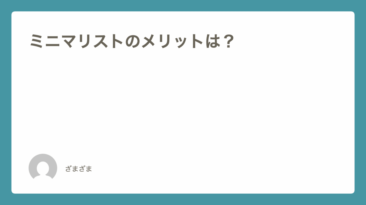 個人的にはミニマリストになるにはメリットが大きいと思います。