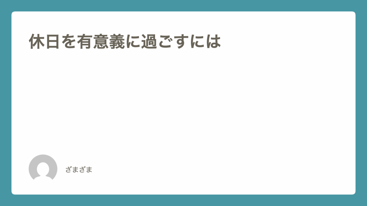 今まで有意義な休日の過ごし方として記事を書いてきました!以下に大事なことを3つまとめたのでそれを覚えてください