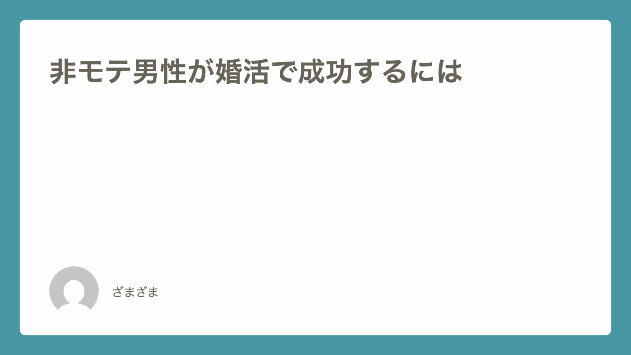非モテ男性の方が婚活で成功するには、なかなか大変だと思います!かくいう私も非モテ男性の一人で1年半ほど前の28歳の時から婚活してもう時期30歳の誕生日を迎えます!